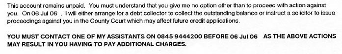 After this the next couple of threatening letters next came from a debt collector making what appear to be heavier threats.