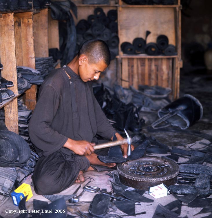 Recycling worn out tyres into buckets & shoes, Afghanistan, c.1974 |