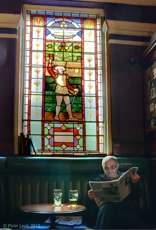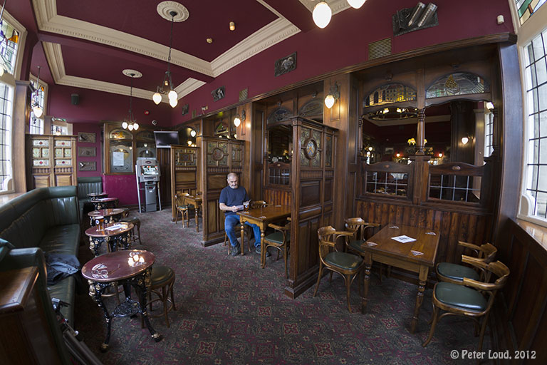 ![]() The Crown Posada, with stained glass windows. An old fashioned pub favoured by mature drinkers. |