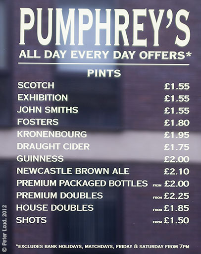 ![]() The price of a pint on The Cloth Market, 2012 |