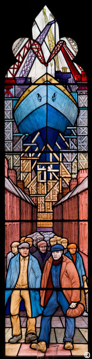 Another view of Shipbuilding on Tyneside Industrial Heritage Window, by Joseph Nuttgens, 2006. St Mary's Catholic Cathedral, Newcastle |