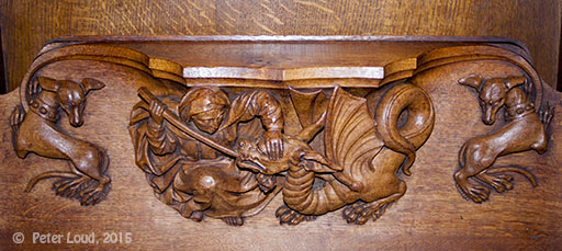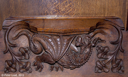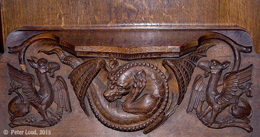 ![]() Misericord S01 The misericords are numbered as being, N or S, i.e. north or south of the aisle, and 01-13, away from the alter. |