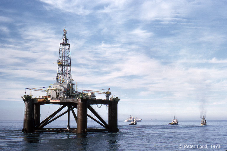 ![]() Neither ship nor boat, drilling rig being towed off Tynemouth, 1970s |