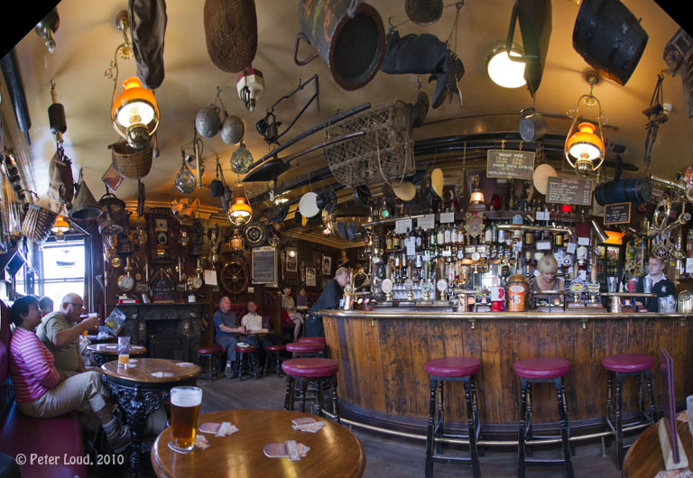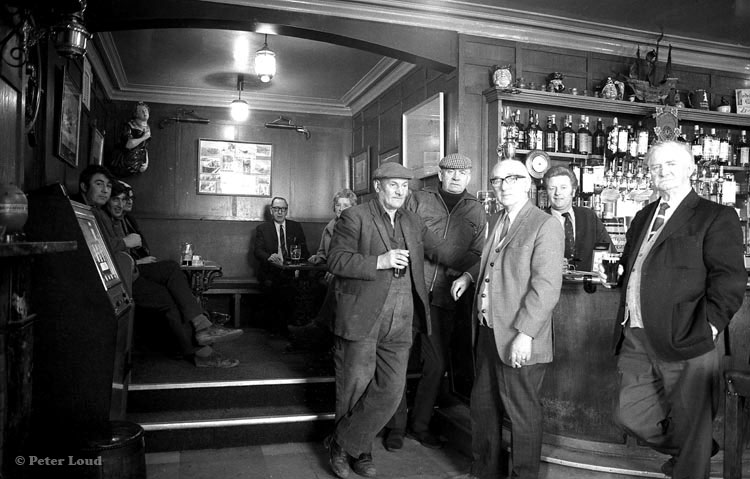 | Taking portrait photographs in The Ship was tricky. It was very dark, and there was very little space. It was like trying to photograph a black cat in a coalshed at midnight. I had to use fast, large grain film, and long handheld exposures about 3 feet from the subject, which is not the way to take portraits :-( |