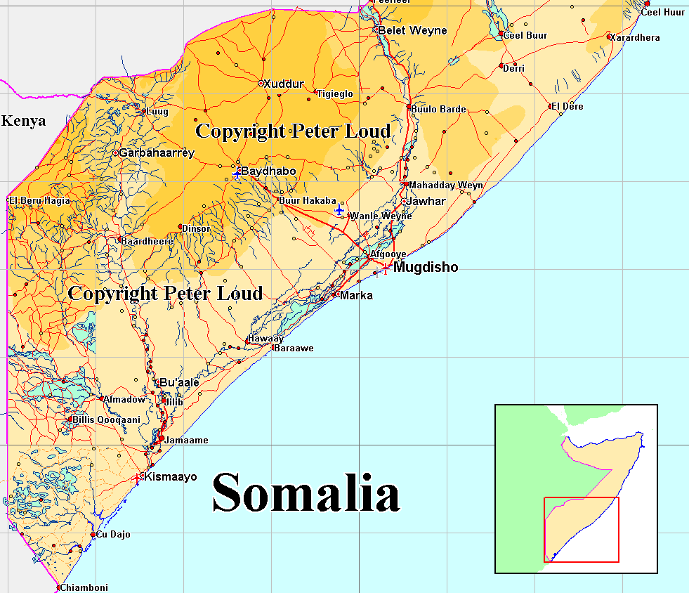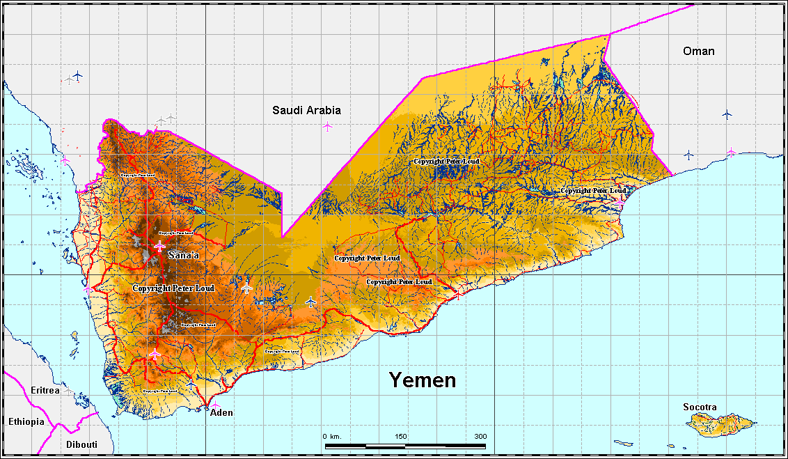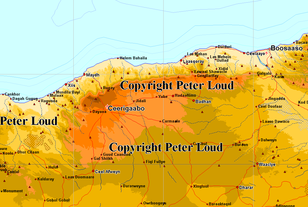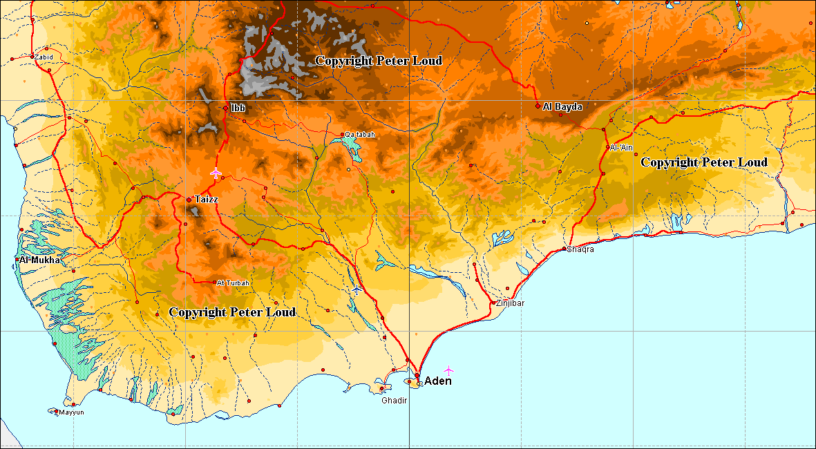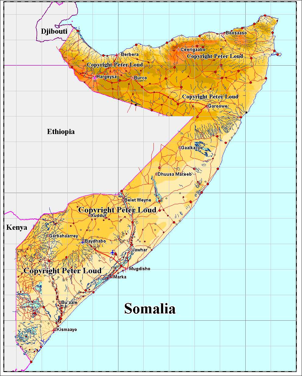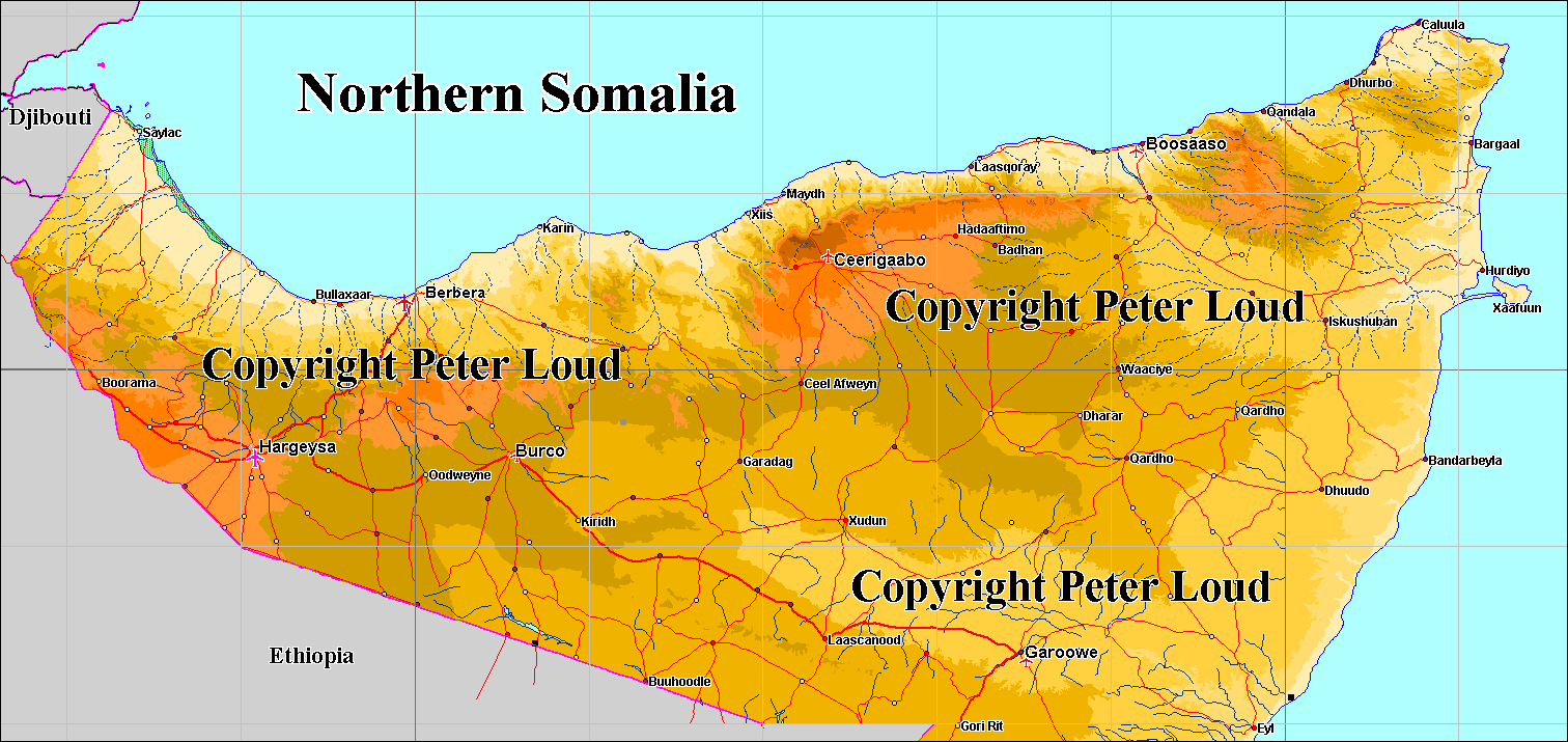 Hi Guys, Yemen and Somalia have been receiving some attention in the months since 9/11, so here are a few maps that I've developed, they still need lots more work. (If you are a commercial organisation you could buy the fully detailed GIS). I am unfamiliar with the status of Somaliland and it's relationship with Somalia. My maps are concerned with the geographic details and do not imply anything about the political status of Somalia/Somaliland. The colours that I normally use for contour polygons are chosen to suit lush, wet South East Asia and don't look right for dry barren Yemen. I have temporarily introduced a new set of contour colours which I thought might better represent this area. I haven't prepared a legend yet. To my surprise, North Somalia has some lush forested hills, so my contour colouring is misleading. It looks an interesting place for the adventurous traveller :-) The map data for Somalia has quite a few errors and omissions. Contour polygons are a problem, especially with North Somalia. There are many errors in the original elevation data which makes it very difficult to convert contour-lines to polygons. There are also missing 'inland waters'. The roads, in the orginal database, which came from the US military, for the southern half of Somalia have been corrupted. |